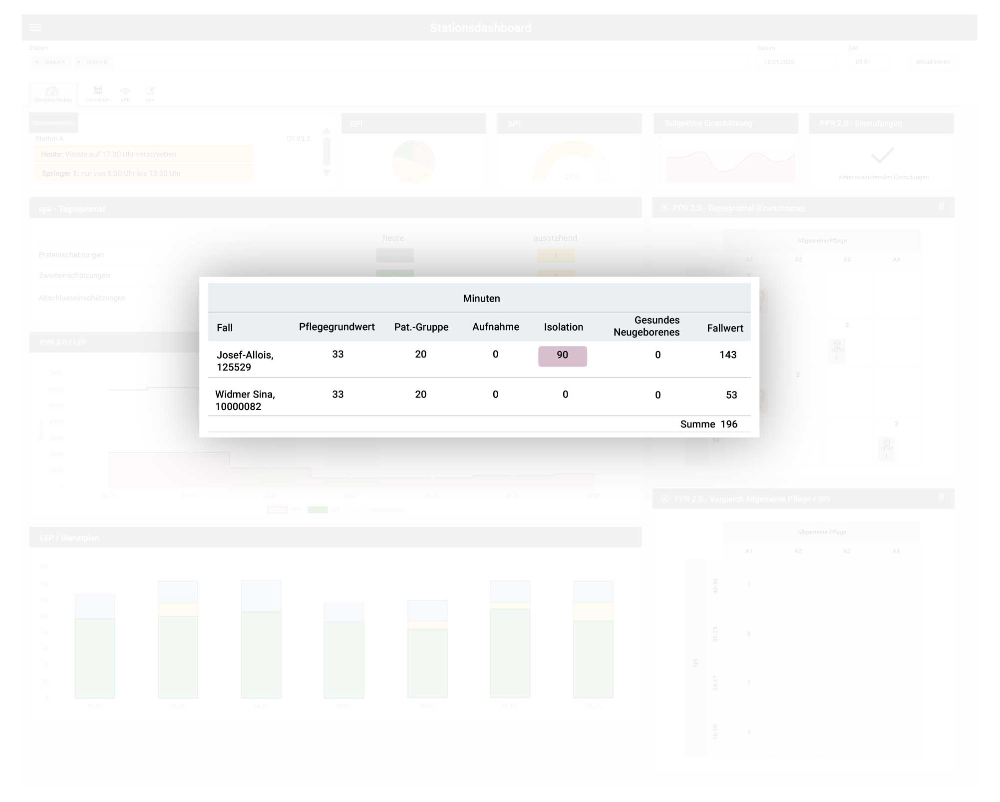 Das Addon übernimmt die im KIS erfassten PPR-2.0-Einstufungen und integriert diese nahtlos in bestehende Module wie Stationsdashboard, Falldashboard, Auswertungen, epaMIS und lepMIS.